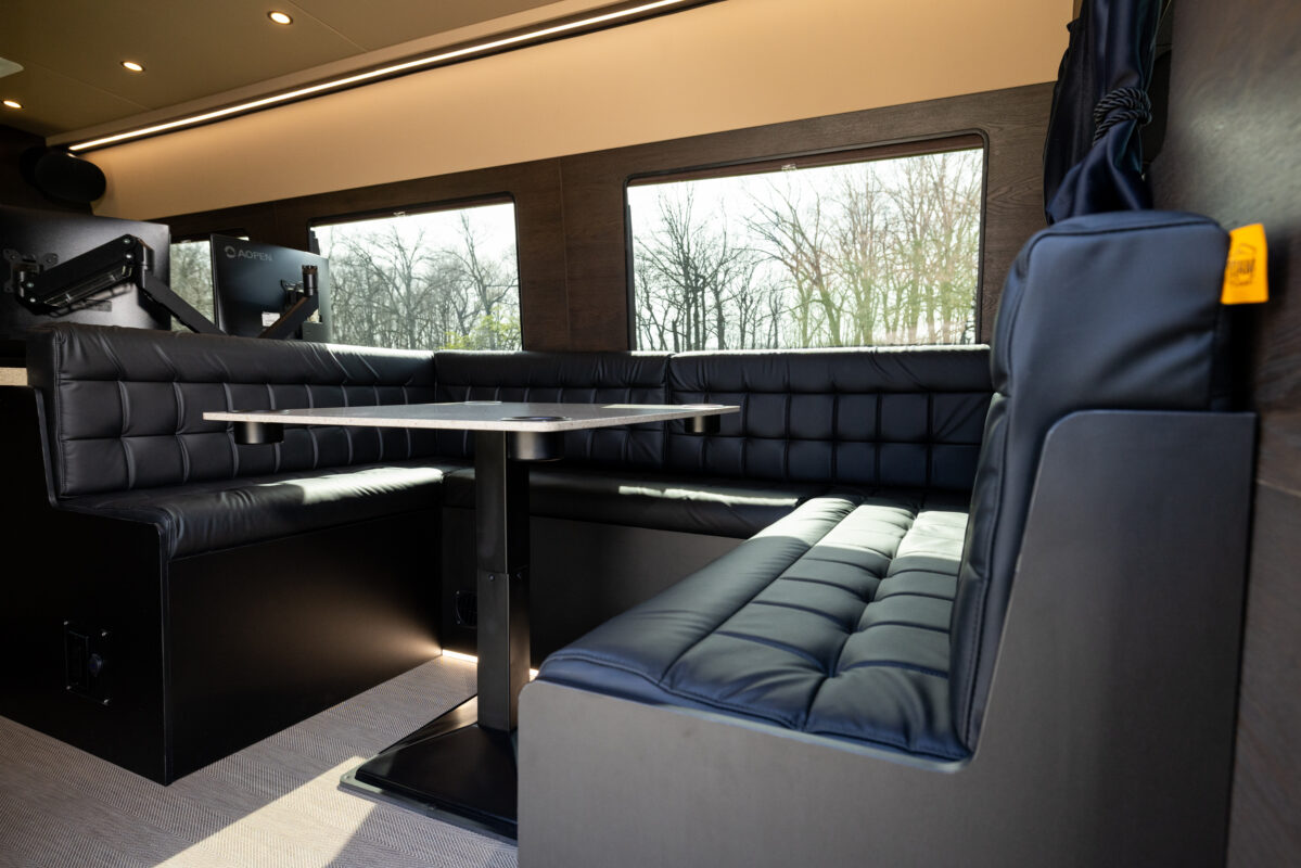 RoamRest Southwestern inspired design features custom seating along with window coverings by Van Made Gear.
